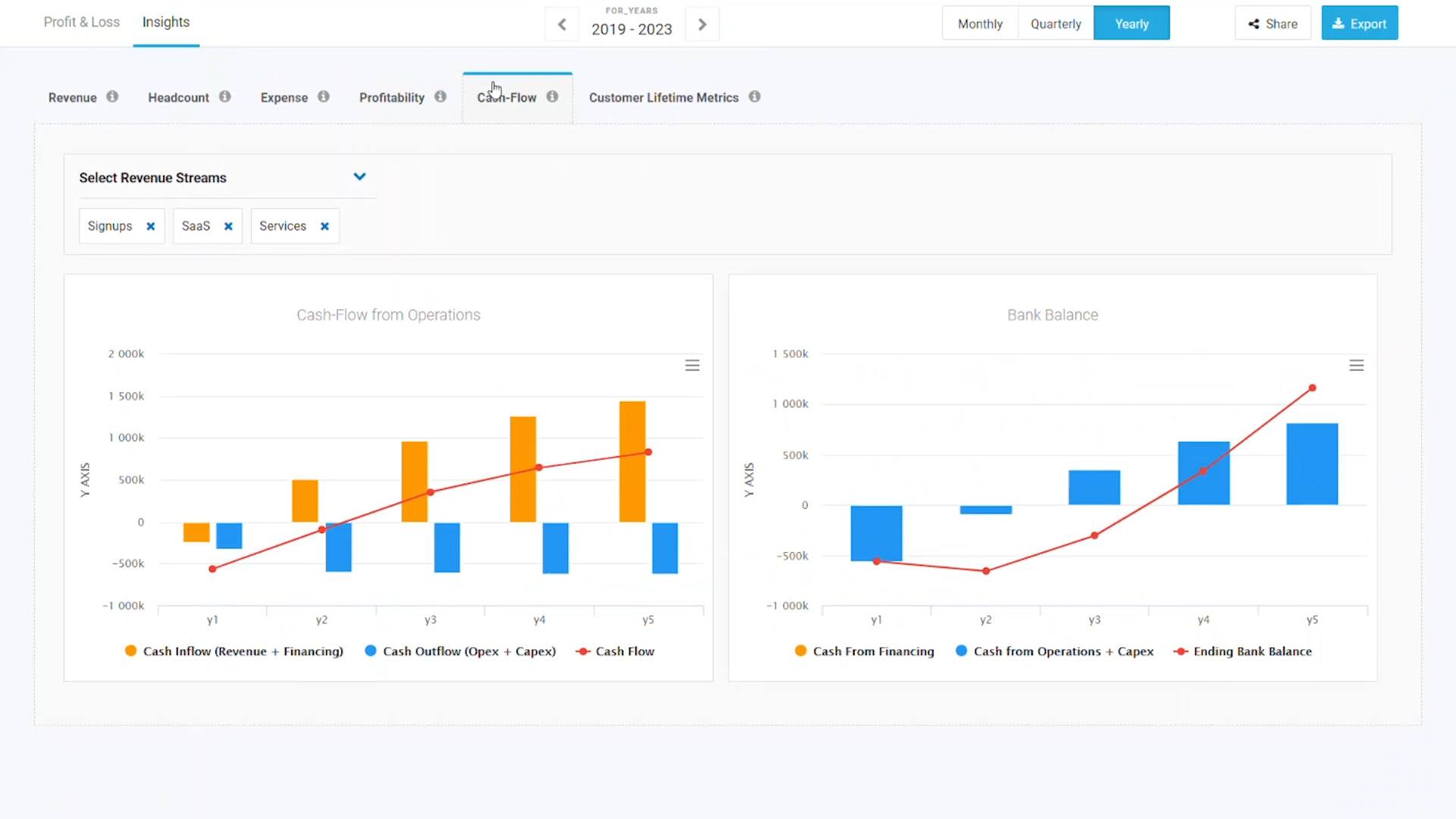You can also ask an unlimited number of "What If" questions in your new scenarios ... What if churn increases? What if we increase our prices? How will moving from monthly to yearly billing affect cash flow?